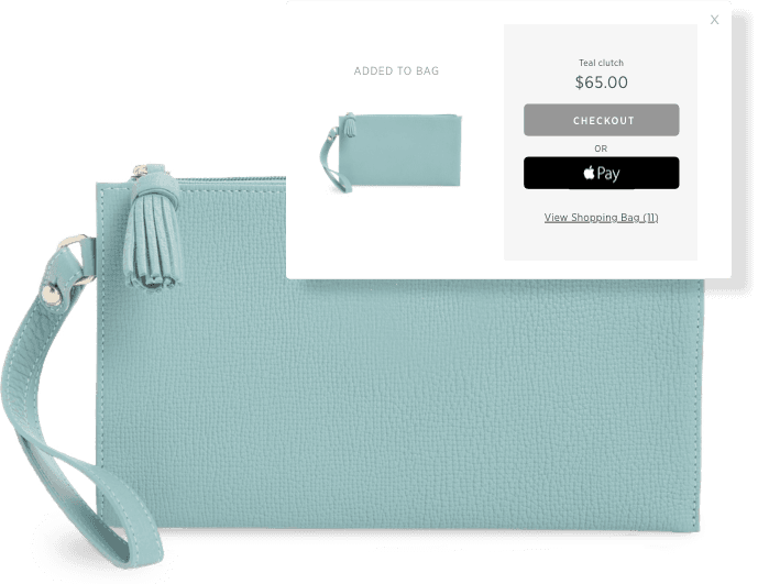 Accédez plus rapidement à votre première vente en acceptant instantanément les principales cartes de crédit, PayPal et Apple Pay en un seul clic.